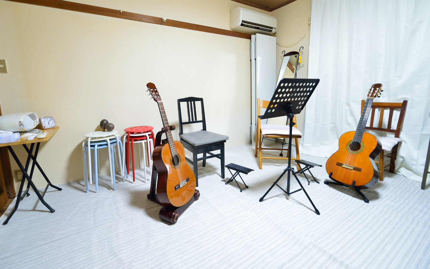 | ♪初心者の方には無料でギターをお貸し致します。 レッスン受講を継続する限り、レンタル期間は特に設けておりません。 ご自分のギターをご購入されたら、ご返却頂ければ幸いです。 ※ギターはレンタル期間中ご自宅にお持ち帰り頂き、使用する事ができます。 レンタル期間中、破損等があっても修理費などは頂きません。 ♪レッスンのご見学、無料体験レッスンを行っております。 無料体験レッスンはどのコースをご希望でも60分のレッスンとなります。 |